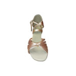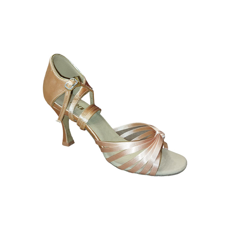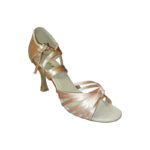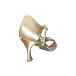 - Ένα σατέν πέδιλο με στριφτό λουράκι με χρυσές σωληνώσεις και αγκράφα από διαμάντι.