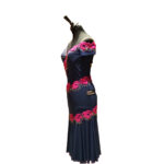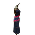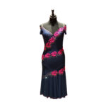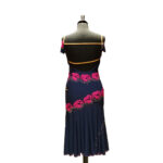 Φόρεμα λάτιν μπλε σκούρο ,φούστα με φύλλα , φούξια μοτίφ , ιριδίζων και φούξια πέτρες
